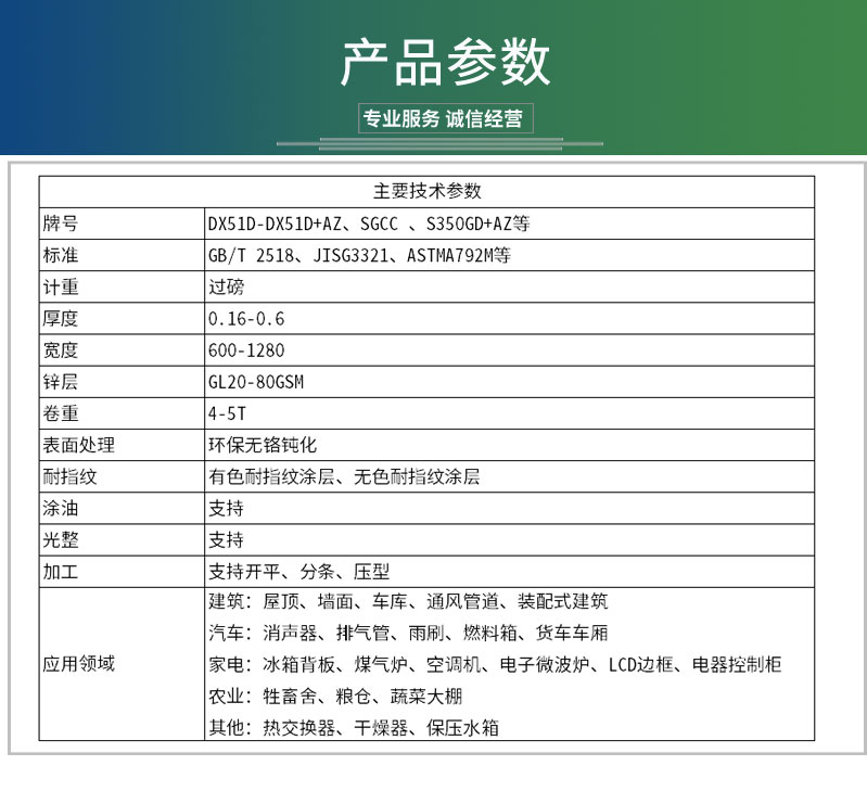熱鍍鋁鋅板的耐蝕性是熱鍍鋅的2~5倍;高至490℃的溫度下連續或間接適用不會嚴重氧化或產生氧化鐵皮;反射熱和光的能力是熱鍍鋅鋼板的2倍,反射率大于0.75是節能的理想建筑材料;至于鍍層選擇熱鍍純鋅還是熱鍍鋁鋅,則主要取決于適用環境的酸堿度。純鋅在堿性介質中的表現優于鋁鋅合金,在酸性介質中的表現則相反。因此,推薦相對酸性環境中采用鍍鋁鋅彩涂,相對堿性環境則采用熱鍍純鋅彩涂,根據使用經驗,濕的木材、混凝土等不要長時間接觸鍍鋁鋅基板。