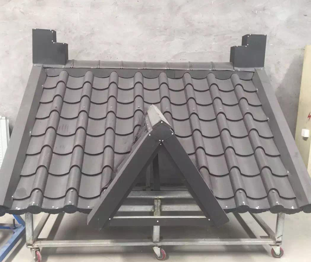 相對古老燒制的琉璃瓦而言,彩鋼仿古瓦拼裝組合的方式更自由,外觀更美觀,施工的速度更快捷。 仿古彩鋼琉璃瓦可廣泛用于歐式別墅,旅游風景區,海濱寓所,度假村,花園式工廠,家庭及各種建筑的室外裝飾。彩色壓型鋼板是采用彩色涂層鋼板,經輥壓冷彎成各種波型的壓型板,它適用于工業與民用建筑、倉庫、特種建筑、大跨度鋼結構房屋的屋面、墻面以及內外墻裝飾等,具有質輕、高強、色澤豐富、施工方便快捷、抗震、防火、防雨、壽命長、免維護等特點,彩鋼仿古瓦現已被廣泛推廣應用。